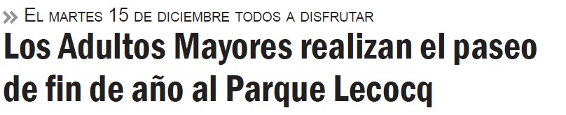 1. Estamos organizando un paseo de fin de año al Parque Lecocq para el martes 15 de diciembre de 10 a 18 hs.